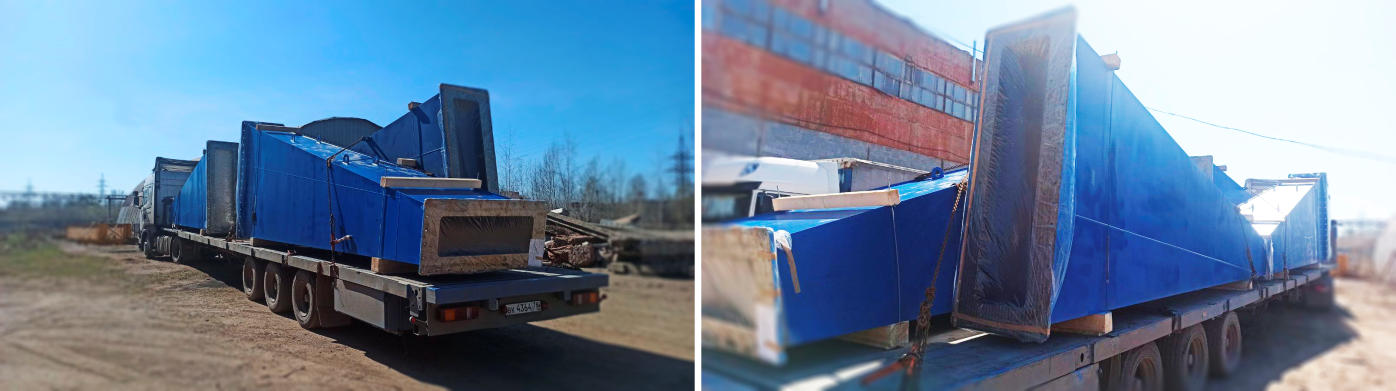 Отгрузка балок крана, ходовых тележек в сборе с балансирами, опор, стяжек, колон консольных кранов