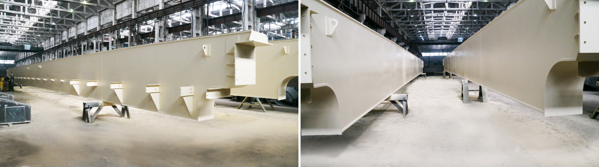 Покраска мостовых балок козлового крана по которым будет ездить телега с двумя подъемами 32 и 16т + консольный кран