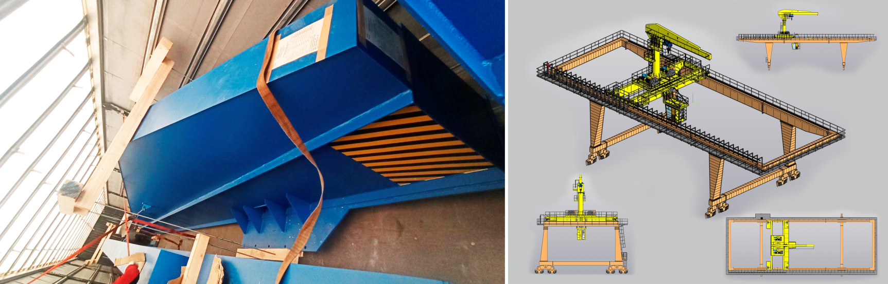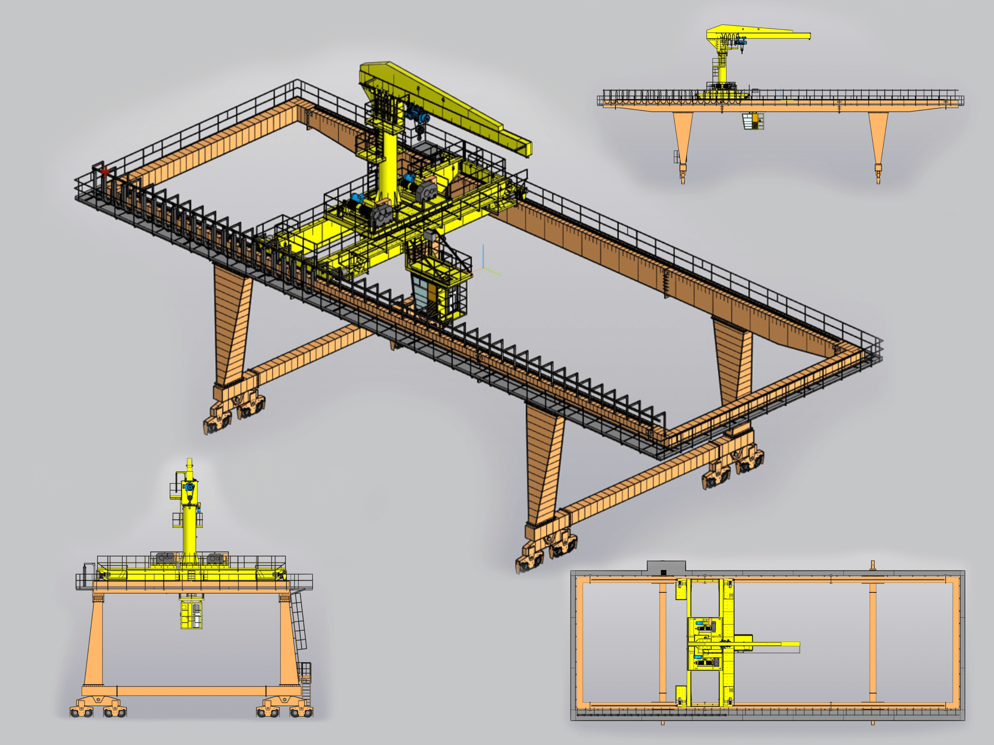 Этап проектирования козлового двухбалочного контейнерного крана г/п 32/16т, пролет 25 метров, режим работы А6, в комплекте с ремонтным консольным краном для обслуживания механизмов подъема и передвижения тележки крана. Кран будет выполнять работы по перегрузке контейнеров на производственной площадке крупнейшего в России горно-металлургического предприятия.